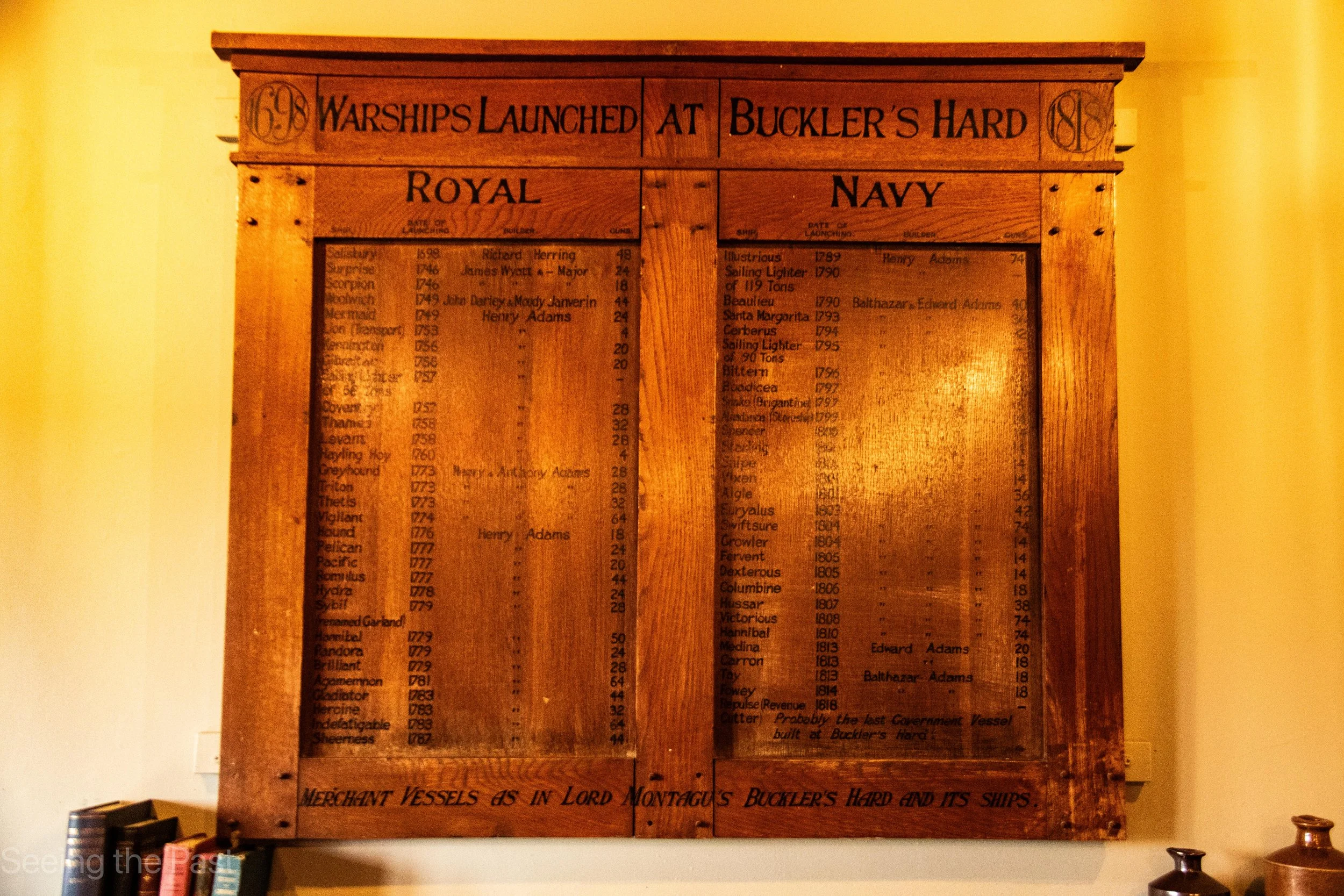 Below; also in the Hotel’s restaurant is this board with the list of warships built at Buckler’s Hard.