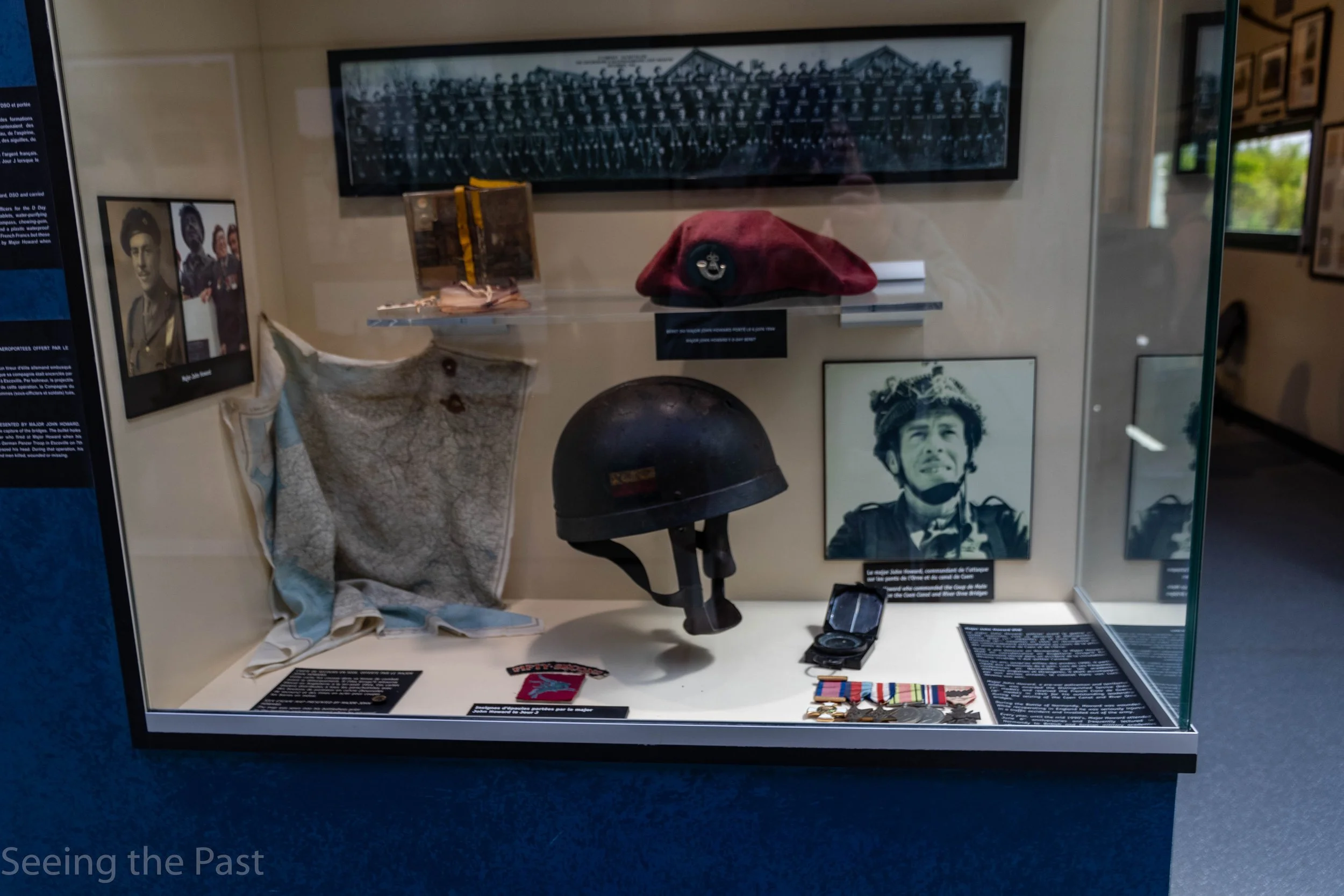 Above; a case devoted to the leader of the raid, Major John Howard and below, a close up of his medals.